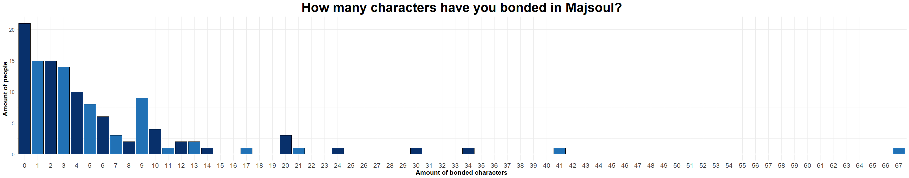 Similarly to above, below is a chart of the amount of characters people have bonded.
